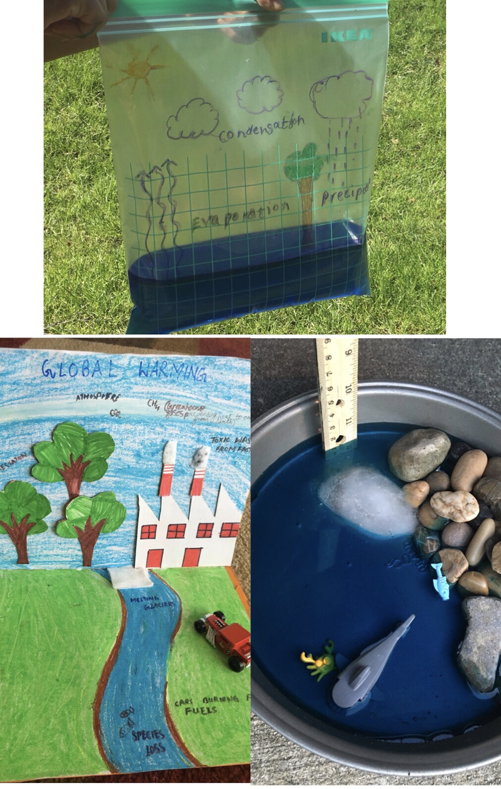 • Draw the water cycle diagram on the ziplock bag including its three stages i.e. evaporation, condensation and precipitation .