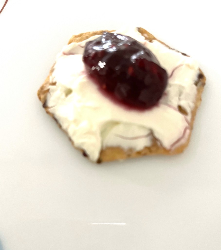 Fruit preseves/jam/jellies: You can give an interesting twist to your cheese cracker from choosing from a wide variety of preserves to jam and jellies. I used strawberry jam.