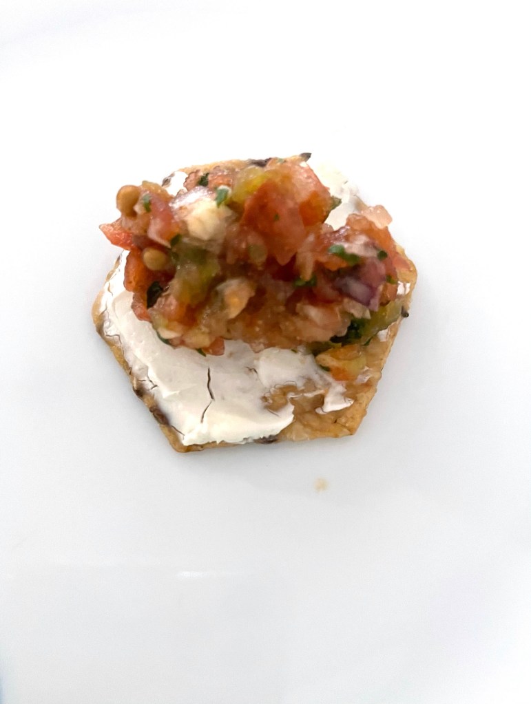 Dip: You can choose any dip from queso, to ranch to hummus. The dip used in here is homemade mexican salsa.